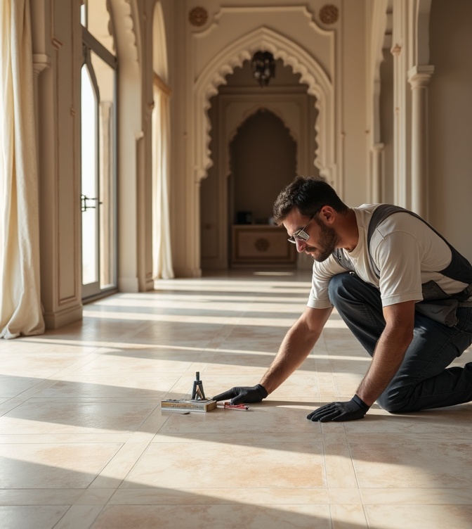 تركيب أرضيات سيراميك في أبوظبي. باركيه وحجري وبورسلان لكل المساحات.